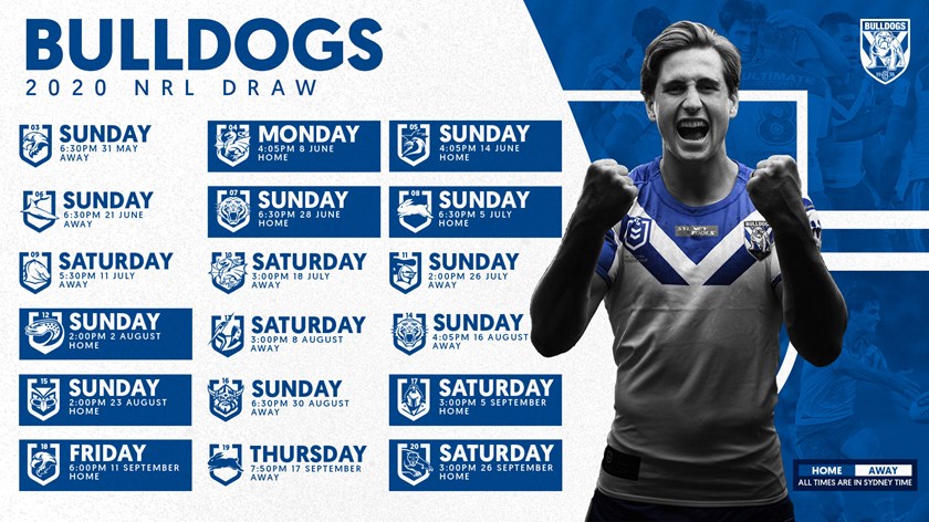The Bulldogs will end their regular season with a clash against the Penrith Panthers in round 20 on Saturday September 26.