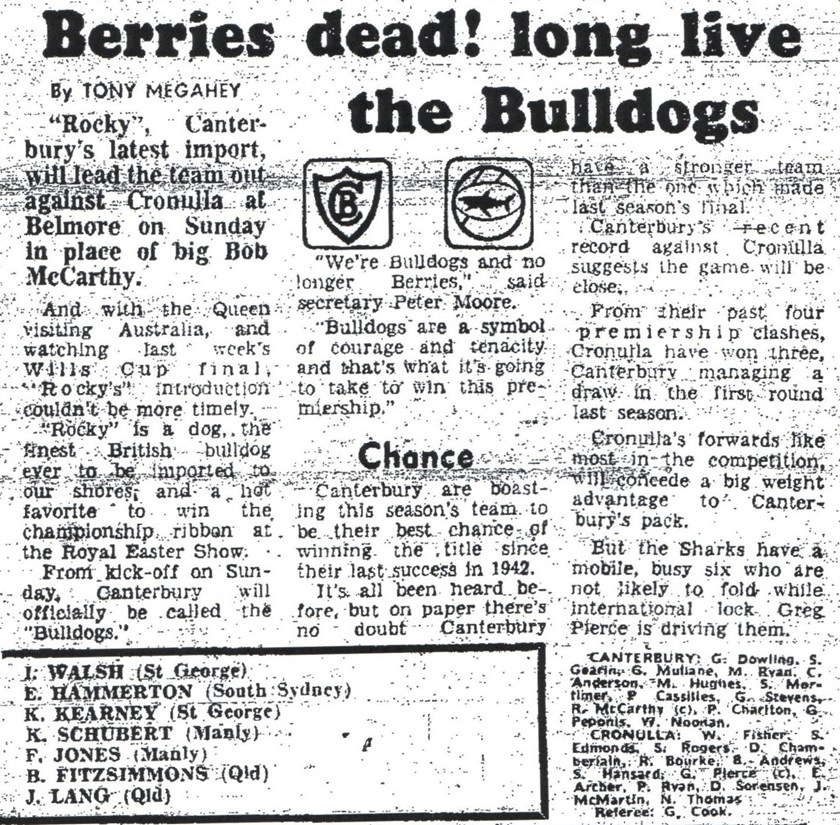 Just two years later, in the first issue of Rugby League Week on March 26, 1977, the Club had officially changed the name ahead of the season kick-off courtesy of The Sun Herald: