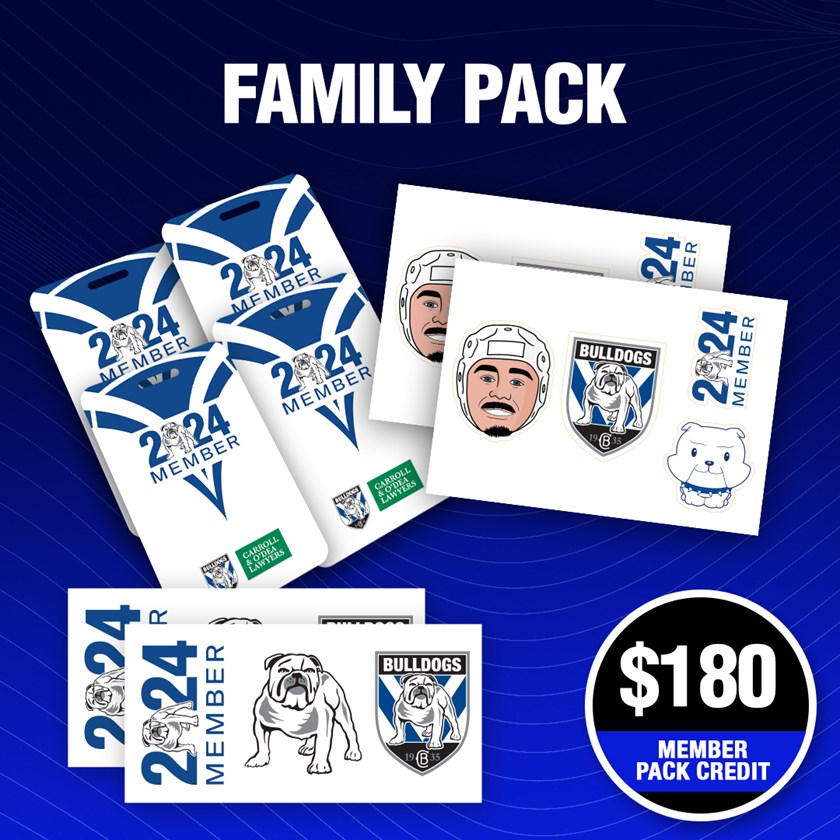 *Terms and conditions apply. Mber+ is not connected to the Bulldogs Team Store. Member Pack Credits can only be used to shop the Member Exclusive Merchandise range available through Mber+. Member Pack Credits are not transferrable and cannot be exchanged for cash. All 2024 Member Pack Credits will expire 31/08/2024.