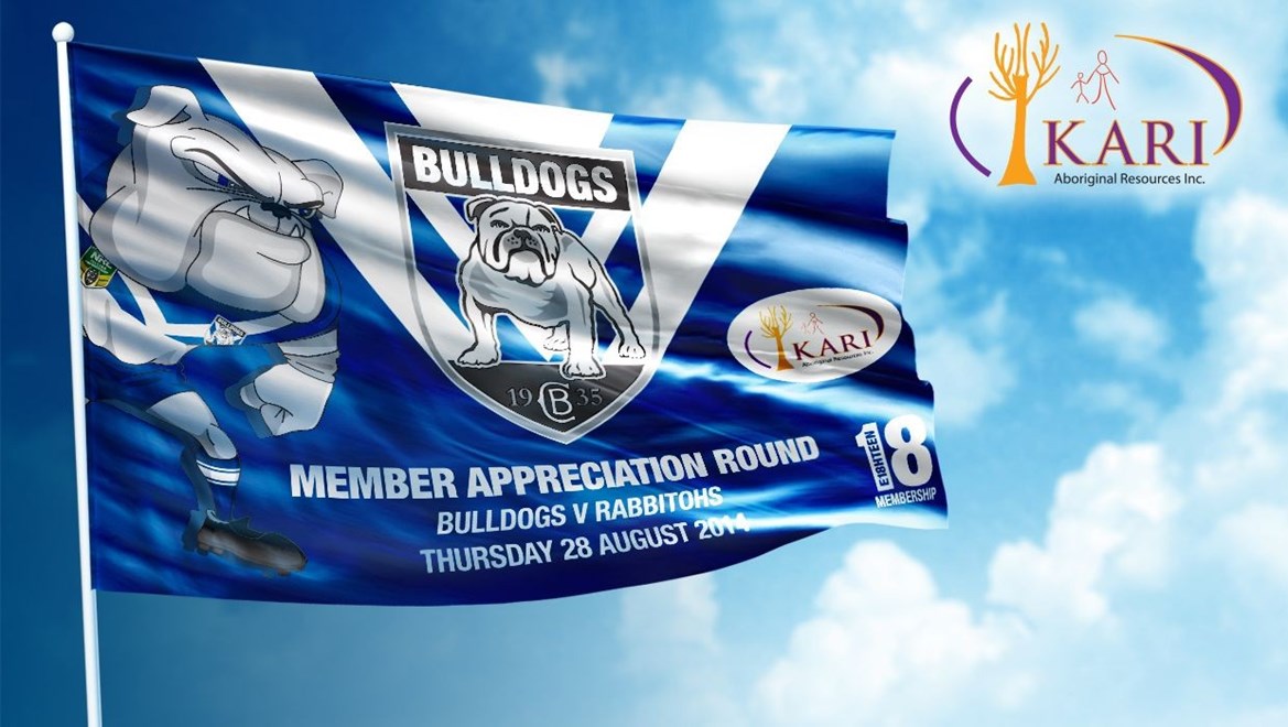 As part of members appreciation round, we are giving away a limited edition Bulldogs flag thanks to Kari Aboriginal Resources, to the first 5000 members at Thursday night's clash against the Rabbitohs.