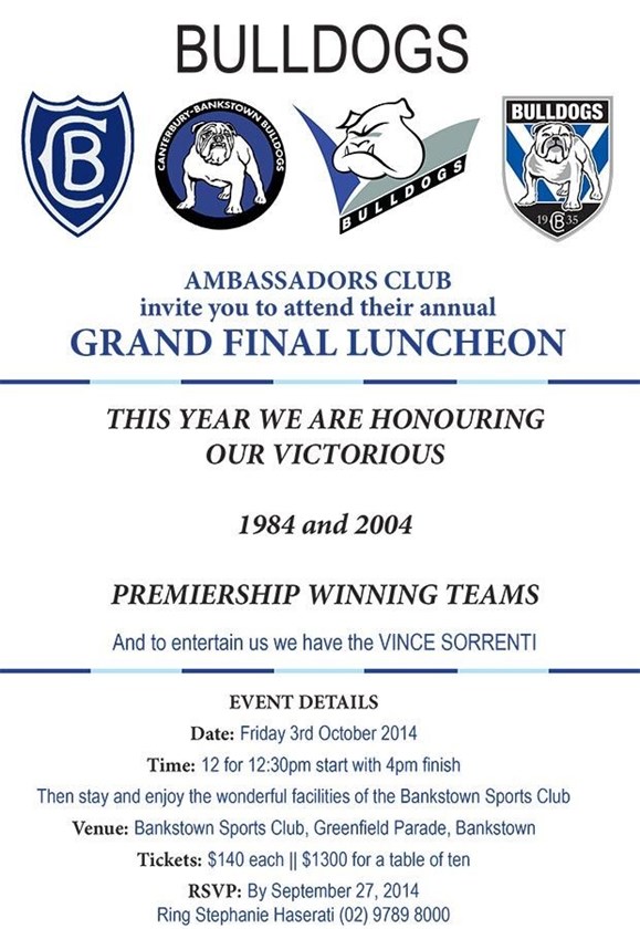 Join members from the 1984 and 2004 Premiership teams for lunch this Friday as they take you through all you need to know about the Grand Final this Sunday!
