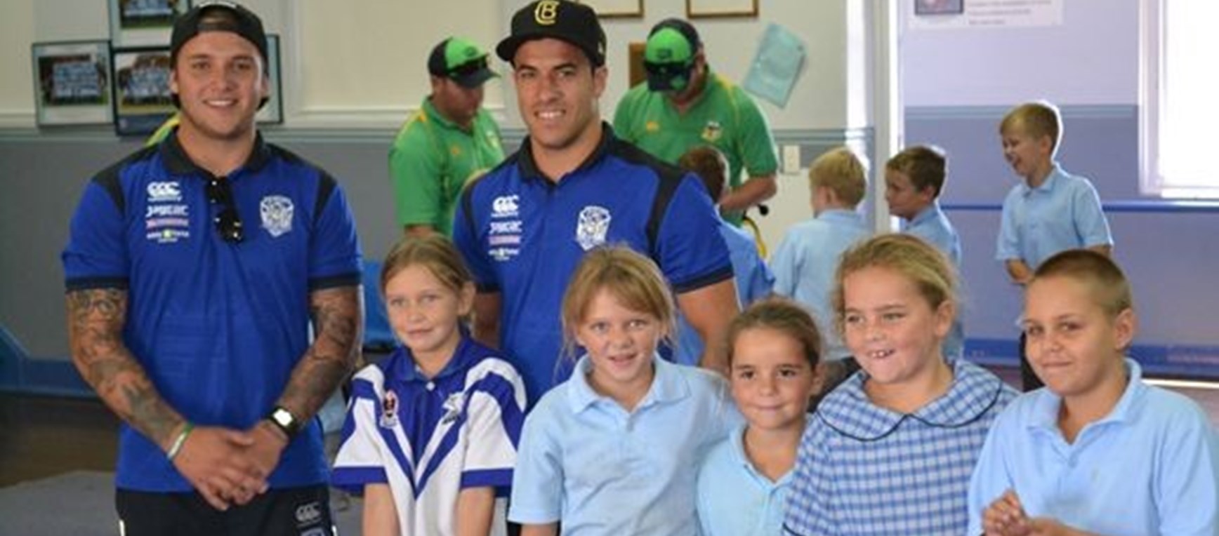 Bulldogs players David Klemmer, Corey Thompson, Kayne Brennan and Lindon McGrady have continued their work, delivering the NRL's wellbeing program and living a healthy lifestyle in the central west of NSW