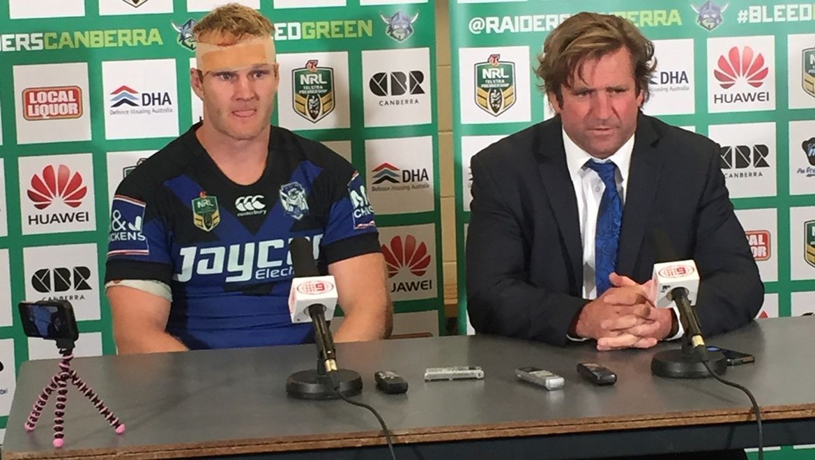 Des Hasler and Aiden Tolman both fronted the media after the amazing 41-34 win over the Canberra Raiders.