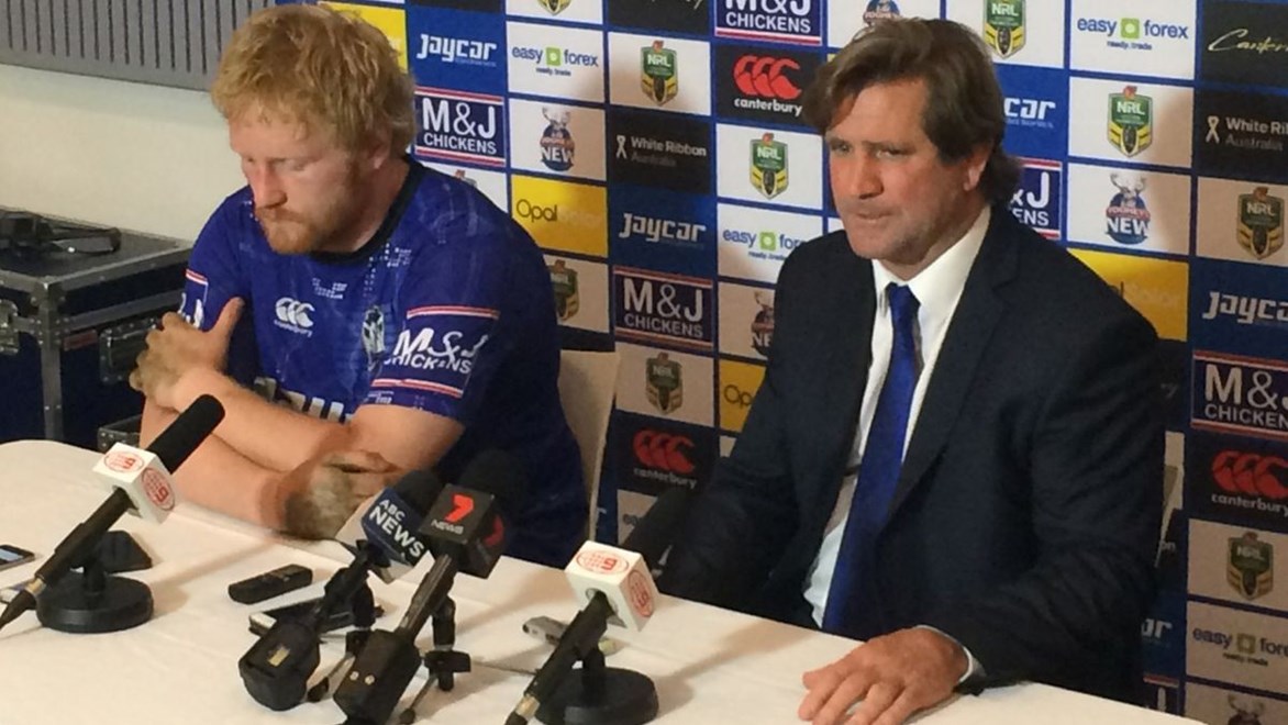 Bulldogs Captain James Graham and Coach Des Hasler speak to media following the Bulldogs tough loss to the Cronulla Sharks at Belmore Sports Ground.