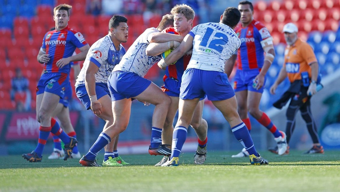 A try to the Knights Ken Tofilau was quickly cancelled out by two tries to the Bulldogs, with Pondekas bagging his second and Smith doing the same in the south-west corner. Josh Bergamin took over the kicking duties and knocked it over smartly from the sideline to put the visitors lead out to 52-14 after 66 minutes.