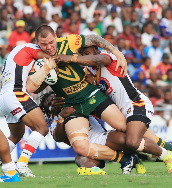 PNG never gave up throughout the match, with the crowd urging their national team on and the Australians were certainly on the end of some bone-crunching tackles.