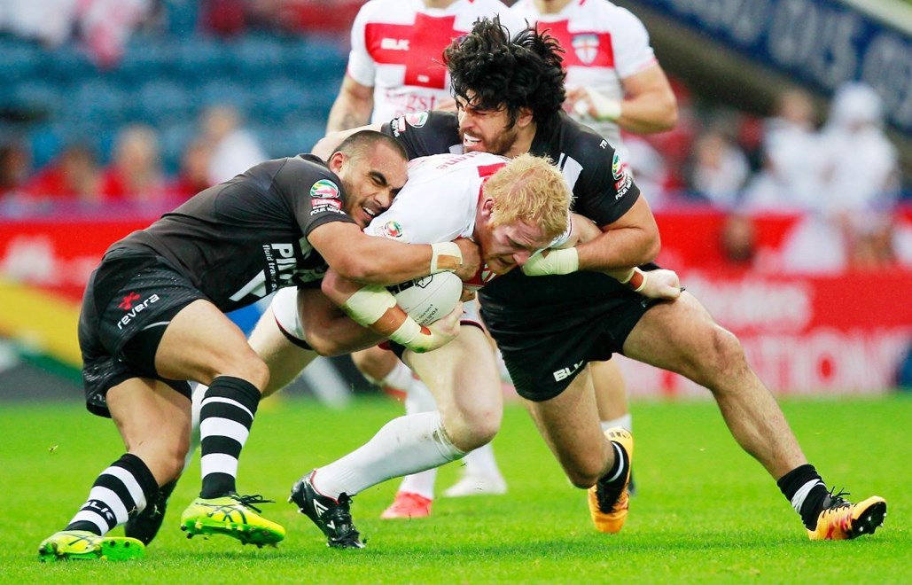 New Zealand 17 (Jordan Rapana 2, Shaun Johnson tries; Jordan Kahu 2 goals; Shaun Johnson field goal) defeated England 16 (Jermaine McGillvary, Ryan Hall tries; Gareth Widdop 4 goals) at John Smith's Stadium, Huddersfield. Crowd: 24,070. Half-time: Kiwis 6-4.Man of the Match: Shaun Johnson.