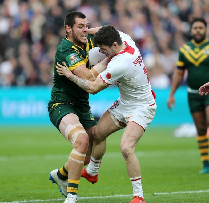 The Kangaroos back-rower's effort would lead to punches between England Sam Burgess and Australian firebrand David Klemmer however – with the latter left bloodied in the aftermath.