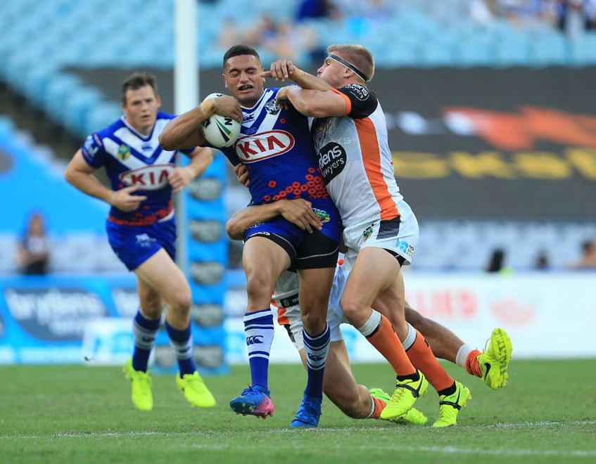 Wests Tigers 18 (Nofoaluma, Naiqama tries; Moses 5 goals) def. Bulldogs 12 (Montoya, Holland tries; Holland 2 goals) at ANZ Stadium. Half-time: Wests Tigers 10-6. Crowd: 19,303.