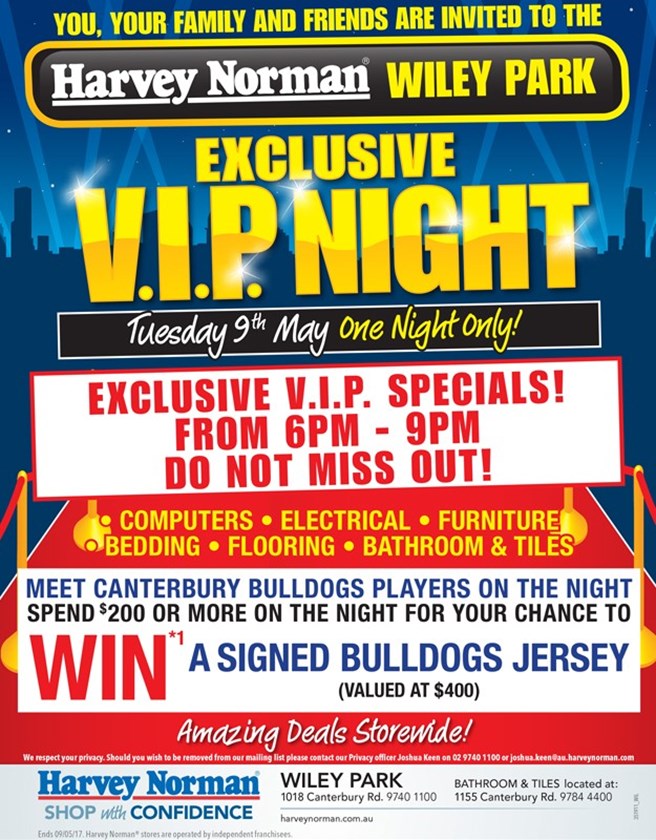 Meet Aiden Tolman, Josh Jackson and Bulldogs legend Terry Lamb tonight at the Harvey Norman Wiley Park VIP Night.