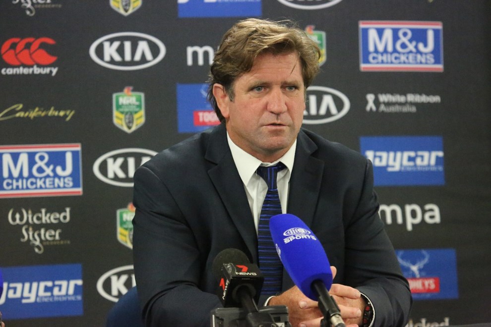 Des Hasler and Aiden Tolman discuss the win over the Newcastle Knights at Belmore Sports Ground.