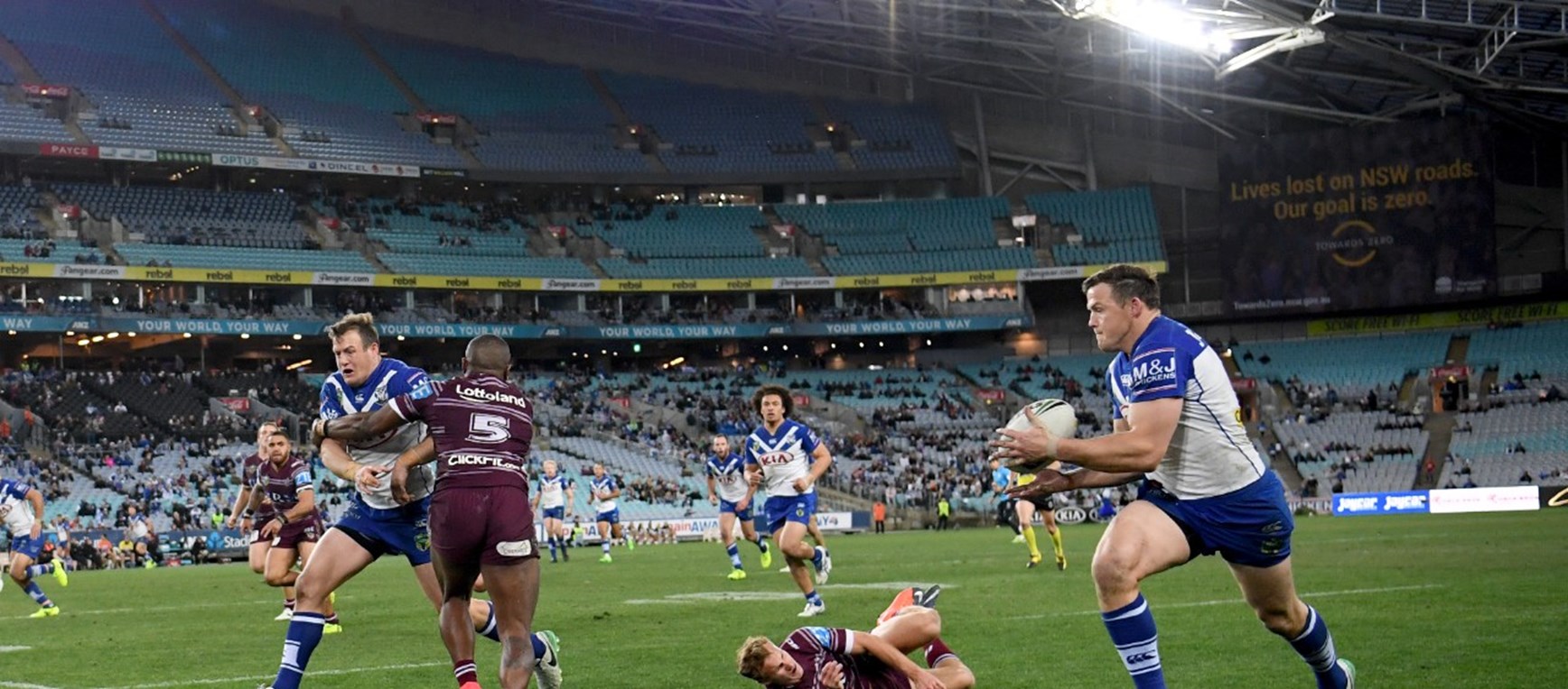 A collection of pics from the action on the field during the Bulldogs win over the Manly Sea Eagles at ANZ Stadium.