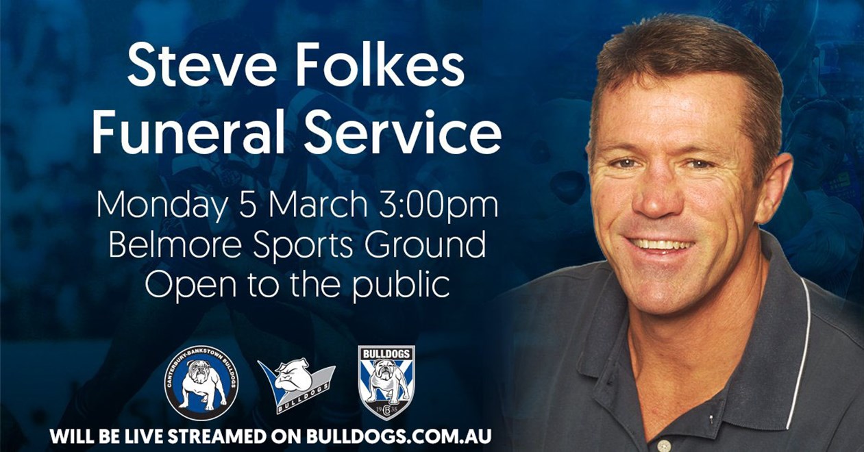 The Canterbury-Bankstown Bulldogs will live stream tomorrow's Funeral Service for Steve Folkes through their website at www.bulldogs.com.au
