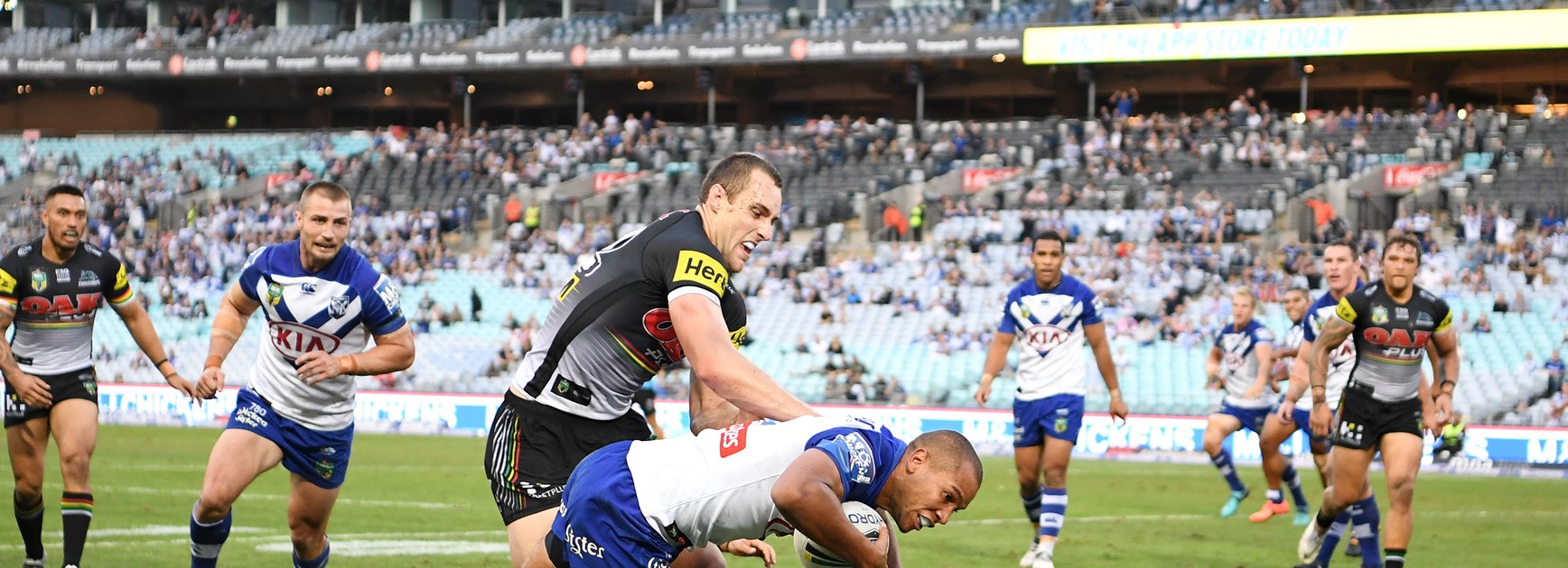 For a third straight week Penrith conceded points early when Mbye crossed on the right side in the fifth minute, after the bunker cleared a possible obstruction of Panthers No.6 James Maloney. The try came in the next set after the bunker disallowed a Brett Morris try, ruling the Bulldogs winger had been held up over the line.
