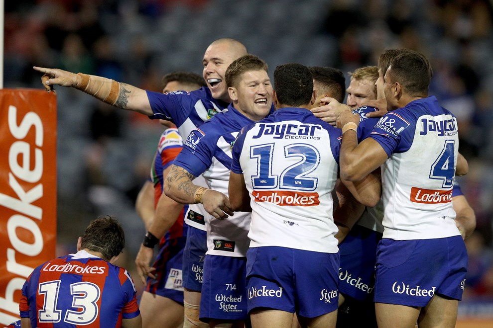 The Bulldogs were lucky not to concede another when Brett Morris failed to take a bomb in the in-goal, but in the set following the drop-out, Connor Watson slipped through the defensive line to give the Novocastrians a four point lead at the break.