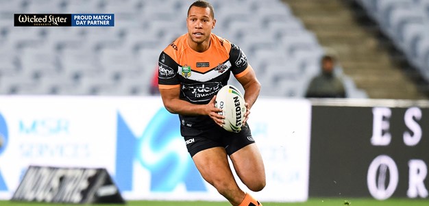 The winger split the Tigers defence thanks to a lovely pass from Will Hopoate, but the Dogs were unable to make the most of their opportunity inside the opposition half thanks to some great scramble defence from the visitors.