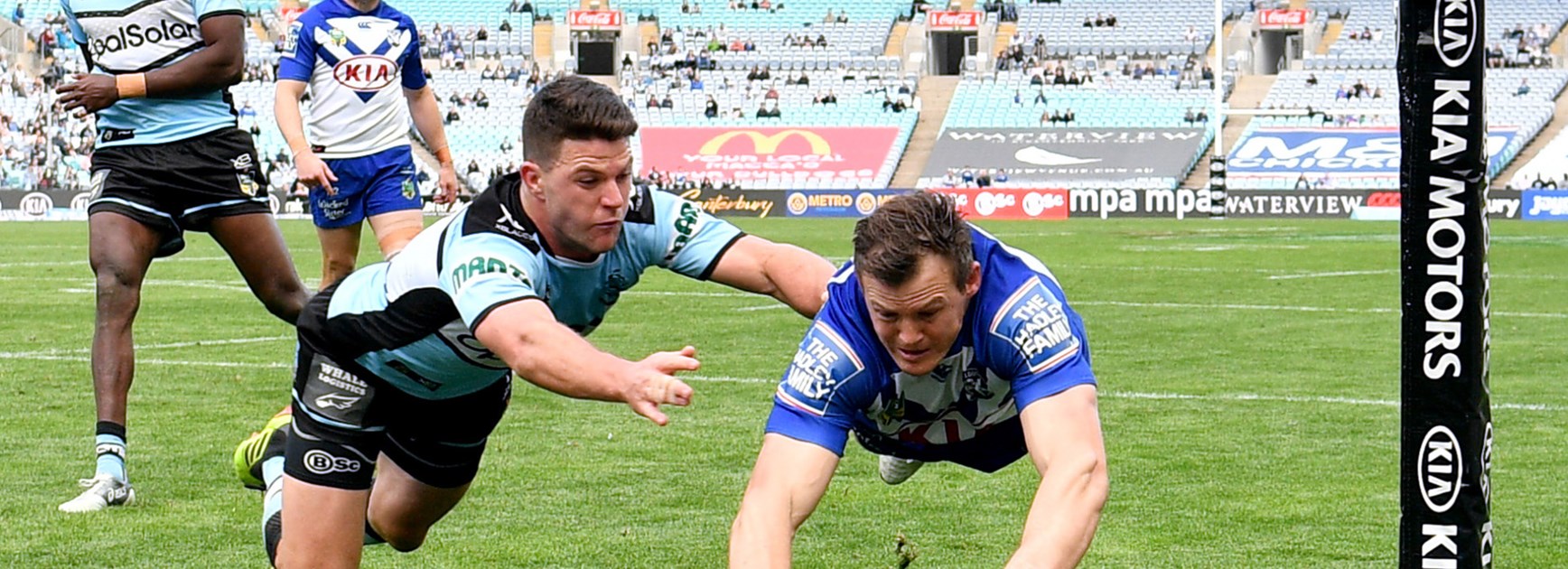The Sharks were on a roll when Dugan sprinted through on an attacking Chad Townsend grubber to make is 16-2 after 22 minutes before the Bulldogs fightback started.