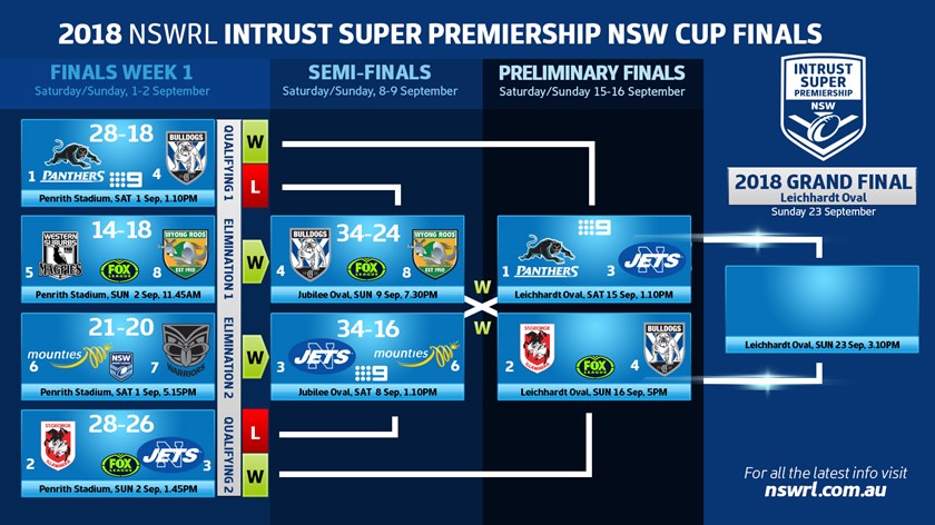 Tune in to FOX League's coverage as St George-Illawarra square-off with the Canterbury-Bankstown Bulldogs for a place in the 2018 Intrust Super Premiership NSW Grand Final. Kick-off from 5pm, AEDT. Check local guides.
