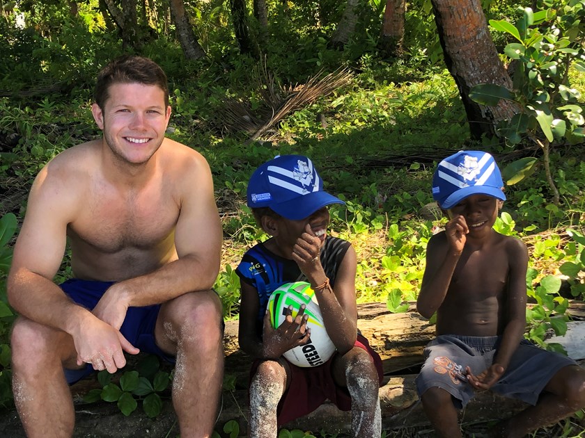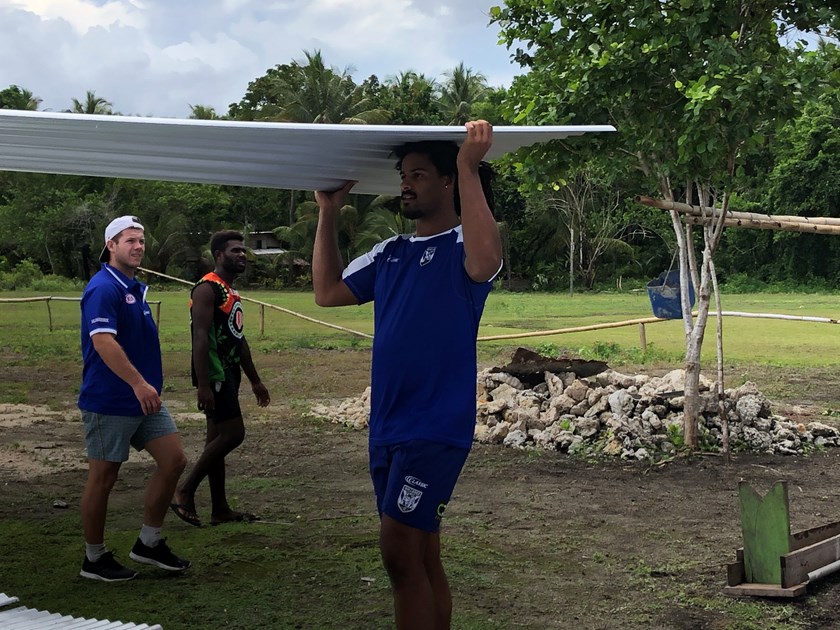 Jack Cogger and Jayden Okunbor have returned from an eye-opening visit to Papua New Guinea where they had the chance to build a community hall, visit local schools and be on hand to formally announce the Bulldogs and Sharks trial game in Port Moresby in February 2020.