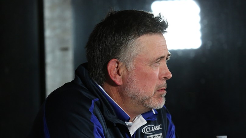Dean Pay chats to the media after his team's Round 3 game against the Sea Eagles