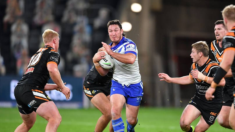 The Canterbury-Bankstown Bulldogs and Wests Tigers do battle at Bankwest Stadium during Round 7 of the 2020 NRL Telstra Premiership