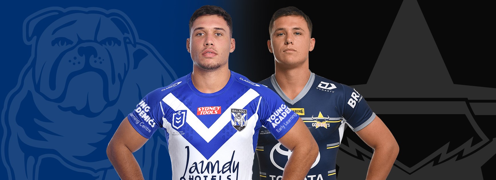 Prop for Bulldogs is number 10 Paul VaughanProp for Cowboys is number 10 Coen Hess