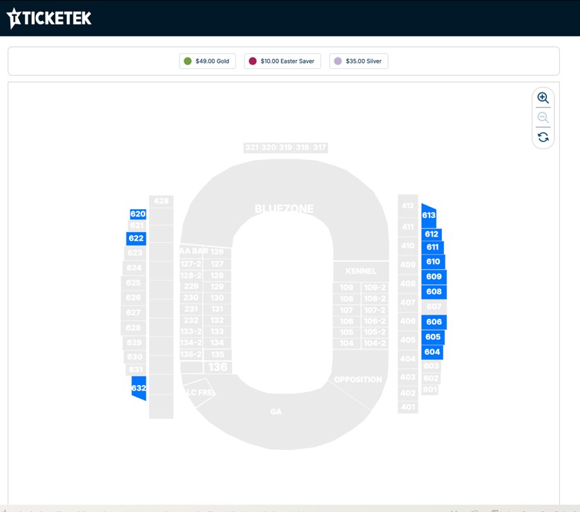 - Choose where you want to sit (blue areas on the left side of the stadium chart)