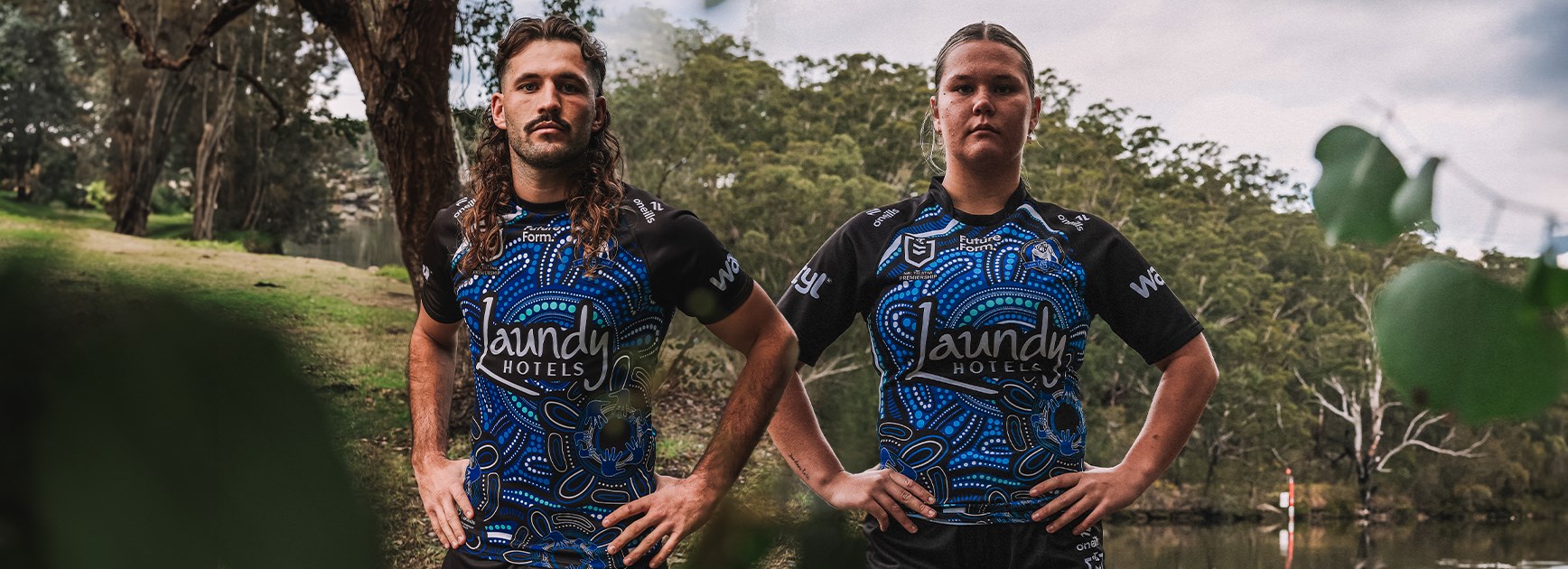 With vibrant depictions of ancestral land shaping lines of hills, pathways and waterways in the Club’s famous Blue and White colours, this design captures the essence of the distinct environments in the Canterbury-Bankstown district that hold historic value.